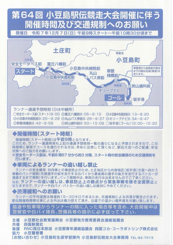 『第64回 小豆島駅伝競走大会』にともなう交通規制のお知らせ
