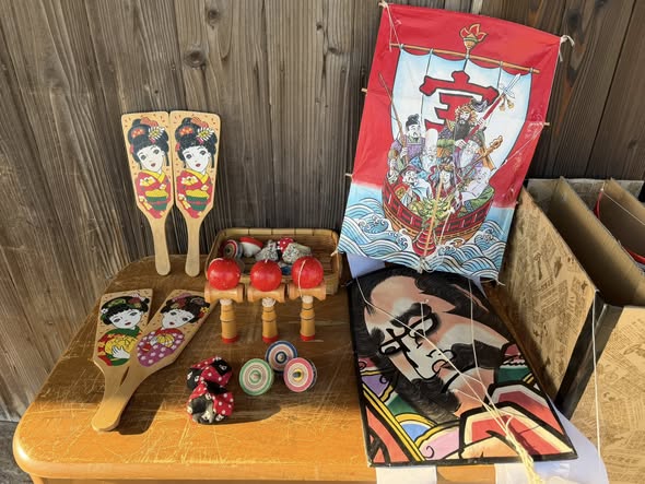 凧や羽子板・独楽(コマ)などをチリリン屋前で無料貸し出ししております。